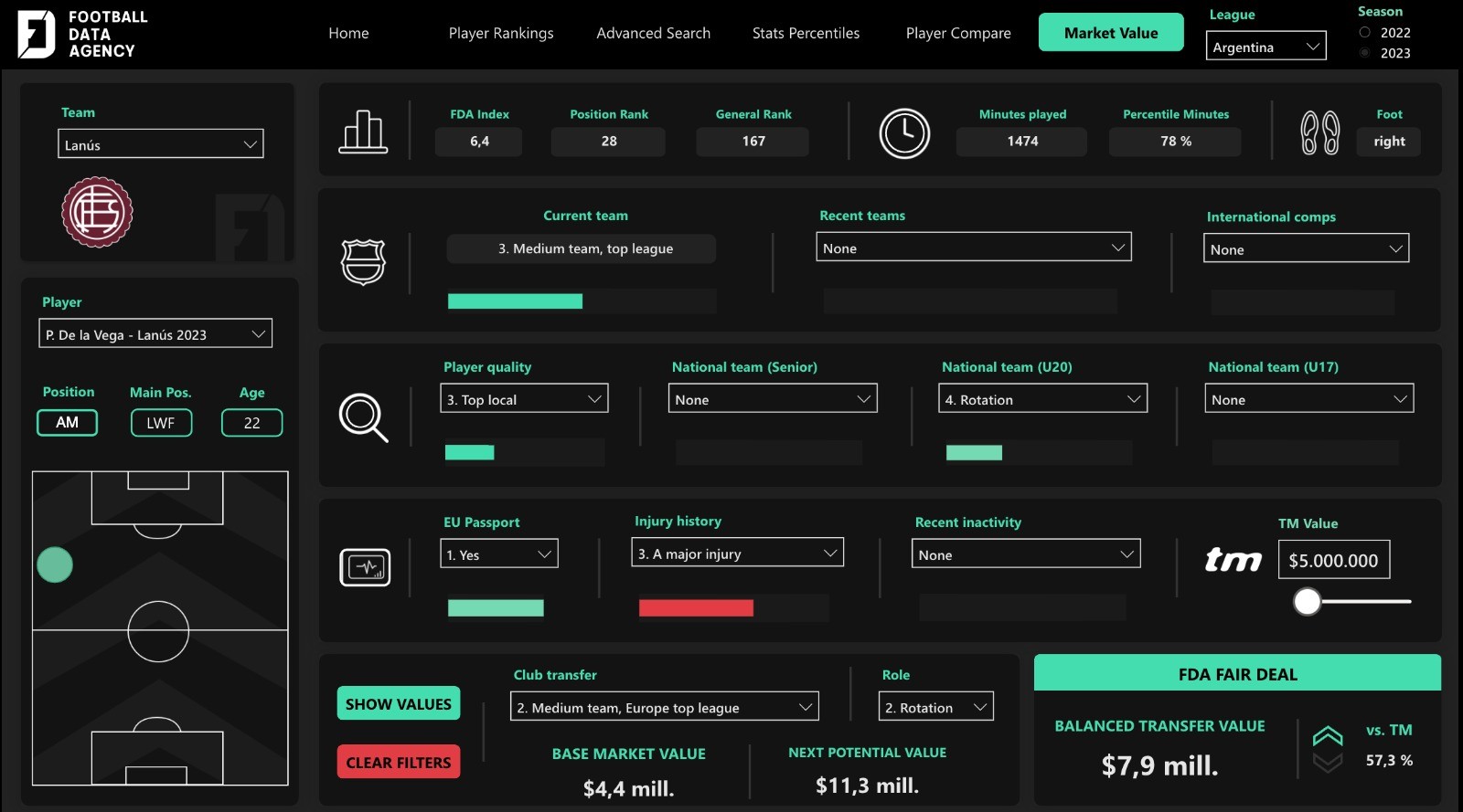 ✦ Análisis integral de jugadores representados.